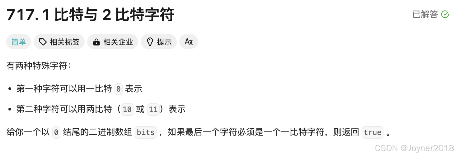 717. 1 比特与 2 比特字符 - 力扣(LeetCode)