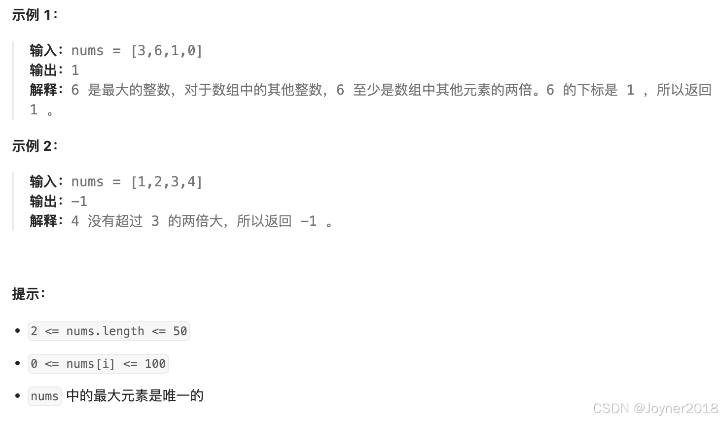 max_num不是所有其他数字的两倍,则返回-1,否则返回max_index。