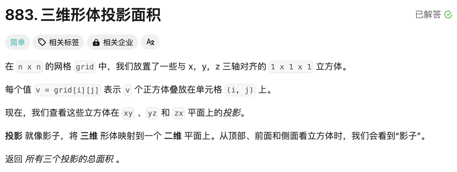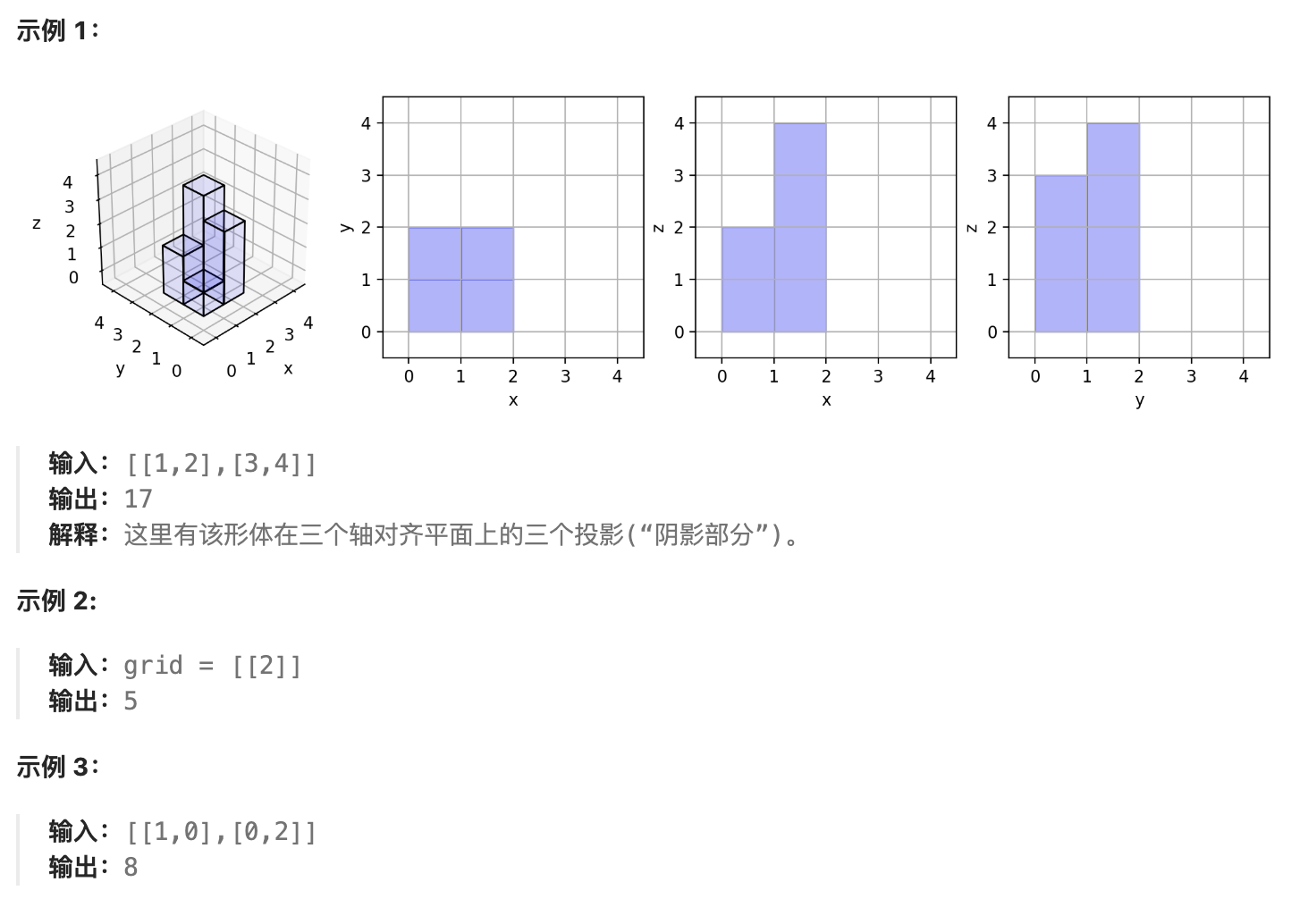 grid[i][j] > 0的位置都会在 XY 平面上留下一个影子。 -