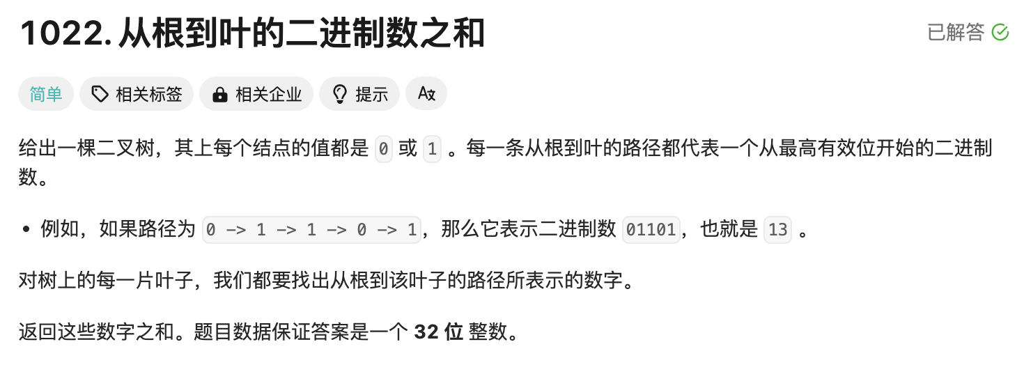 1022. 从根到叶的二进制数之和 - 力扣(LeetCode)