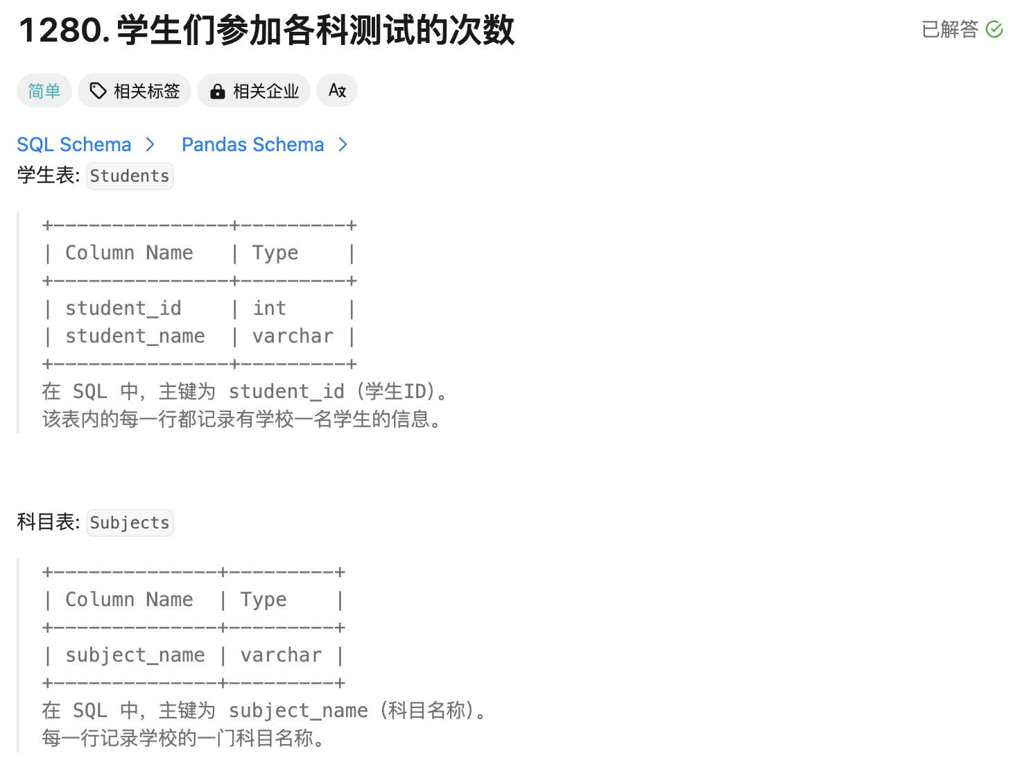 1280. 学生们参加各科测试的次数 - 力扣(LeetCode)