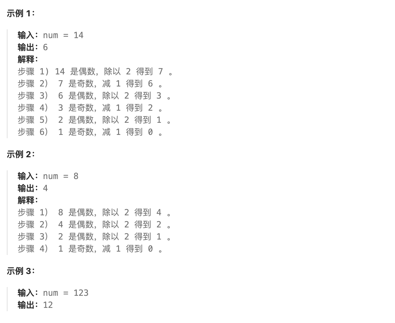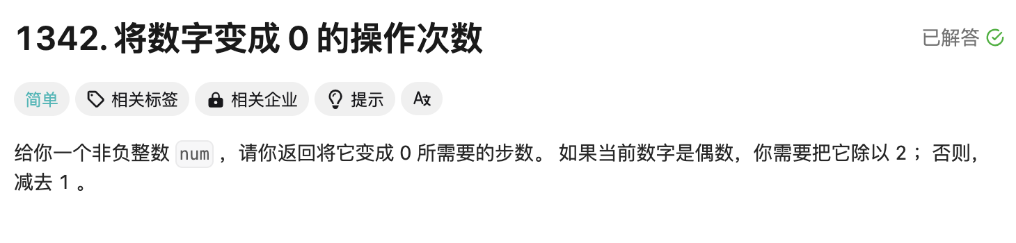 1342. 将数字变成 0 的操作次数 - 力扣(LeetCode)