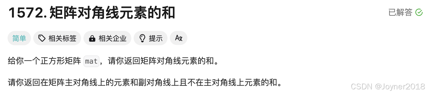 1572. 矩阵对角线元素的和 - 力扣(LeetCode)