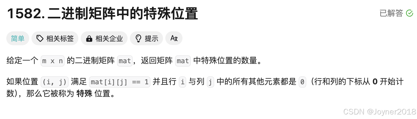 1582. 二进制矩阵中的特殊位置 - 力扣(LeetCode)