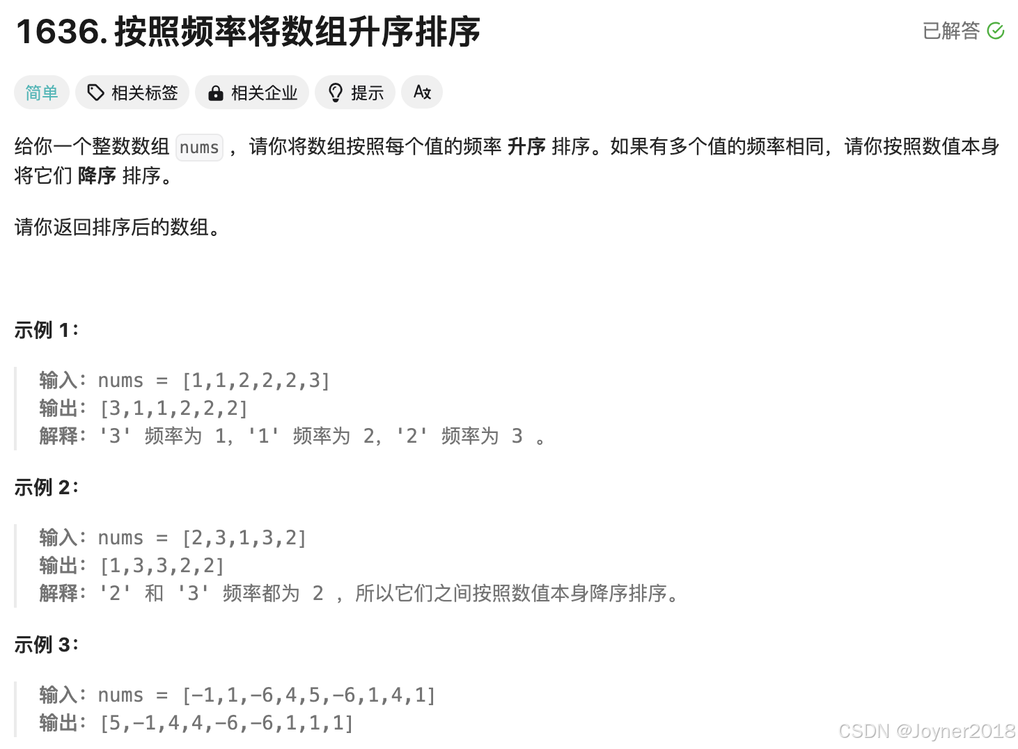1636. 按照频率将数组升序排序 - 力扣(LeetCode)