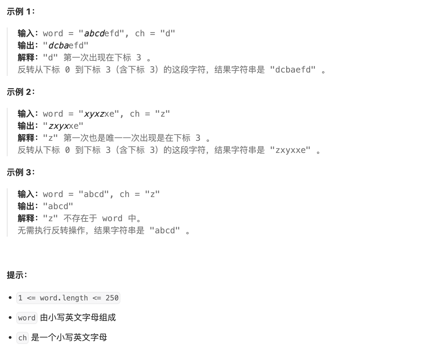 reverse_prefix("xyxzxe", "z") # 返回 "zxyxxe"