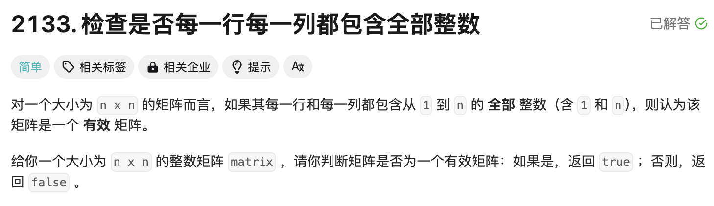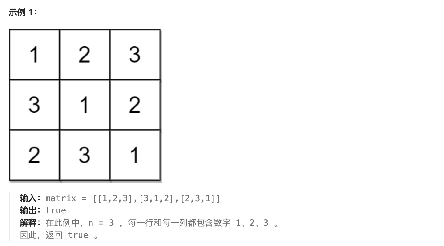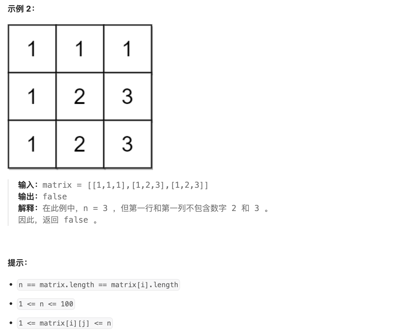 2133. 检查是否每一行每一列都包含全部整数 - 力扣(LeetCode)