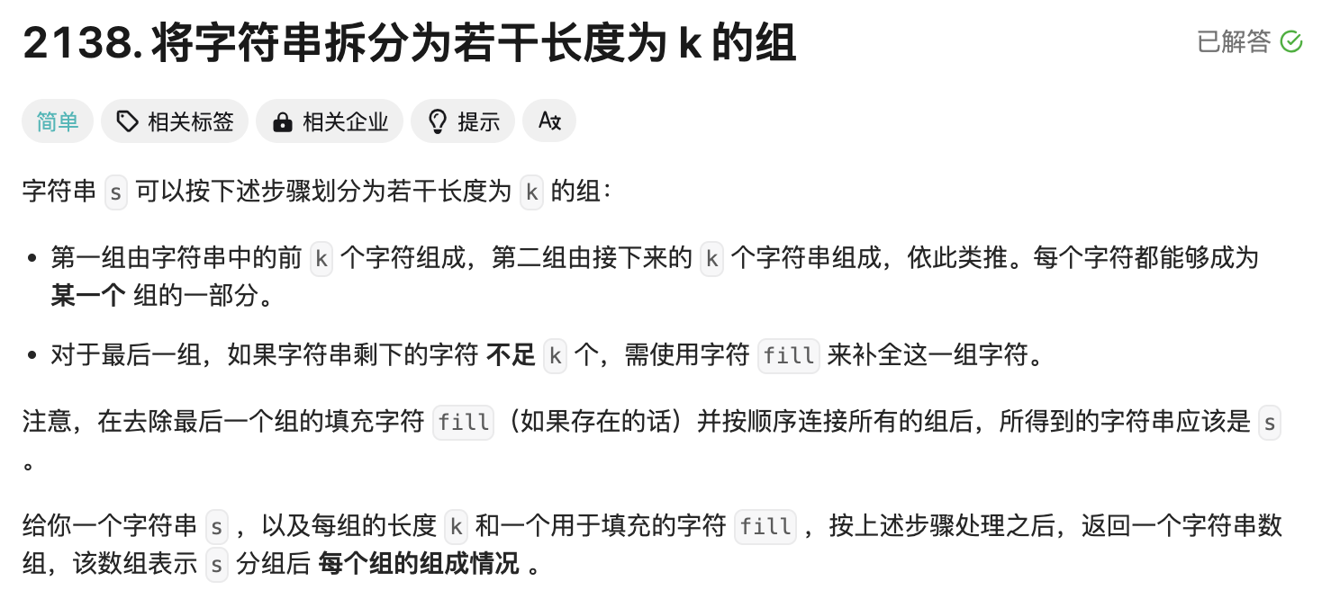 2138. 将字符串拆分为若干长度为 k 的组 - 力扣(LeetCode)
