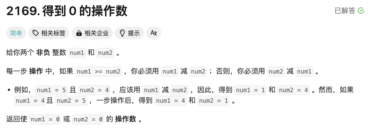 2169. 得到 0 的操作数 - 力扣(LeetCode)