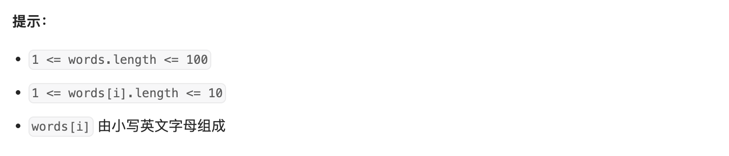 i满足0 < i < words.length -