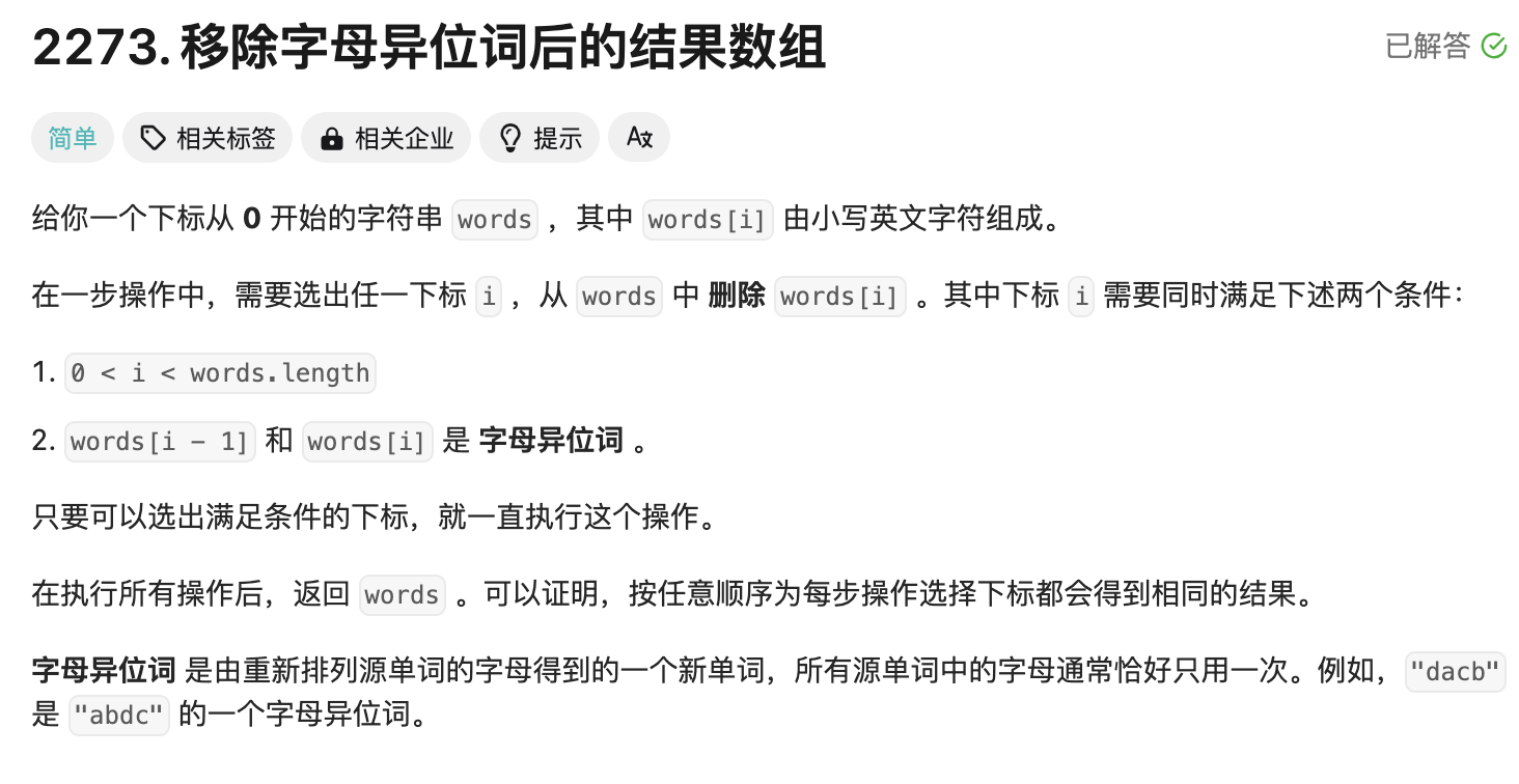 2273. 移除字母异位词后的结果数组 - 力扣(LeetCode)