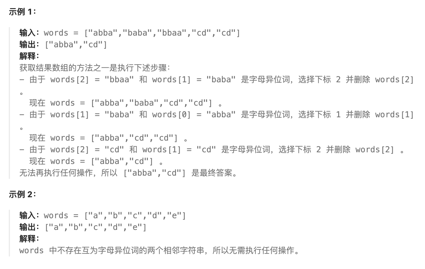 words[i - 1]和words[i]是字母异位词