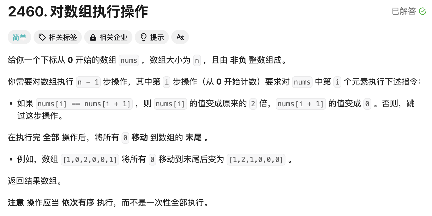 print(apply_operations([2,2,0,4,4,8])) # 输出:[4, 4, 8, 0, 0, 0]