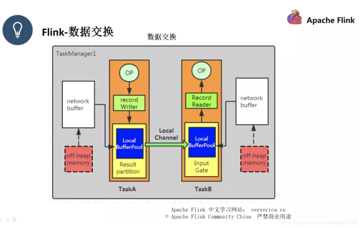 同一个 Task 的数据交换就是我们刚刚提到的 forward strategy 方式,主要就是避免了序列化和网络的开销。