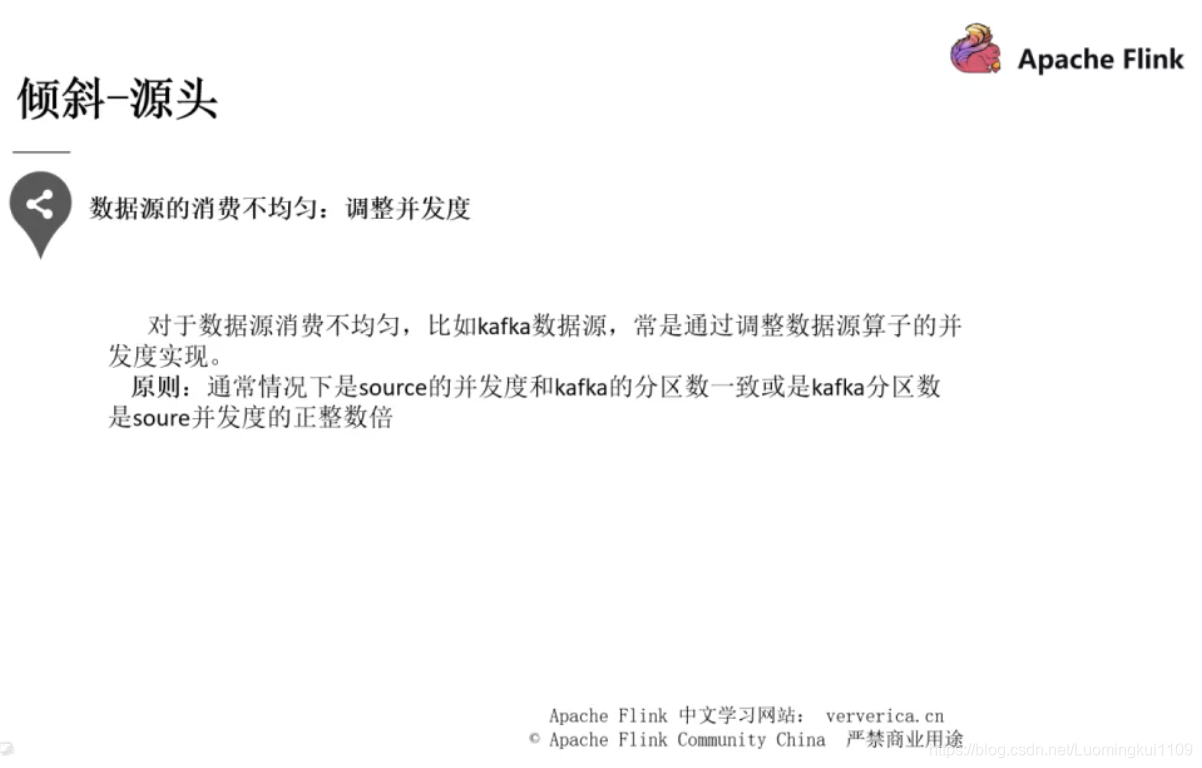 第一种场景是当我们的并发度设置的比分区数要低时,就会造成上面所说的消费不均匀的情况。