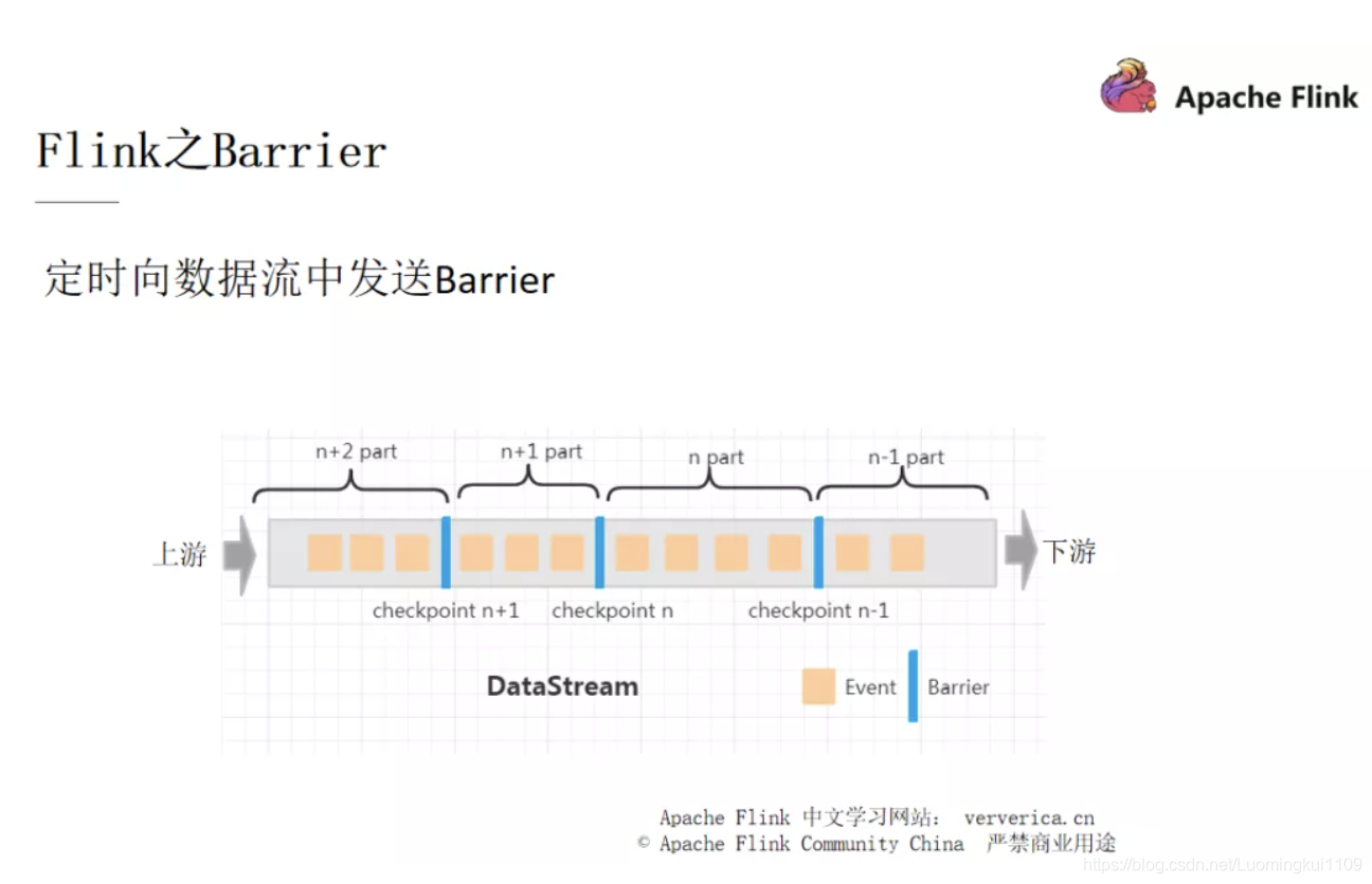 Flink 是将 checkpoint 都放进了一个名为 Barrier 的流。