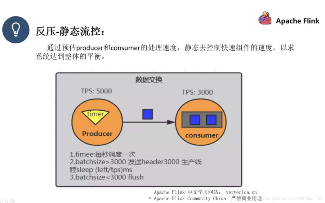 Flink 也是通过有界 buffer 来进行不同 TaskManager 的数据交换。而且做法分为了静态控流和动态控流两种方式。