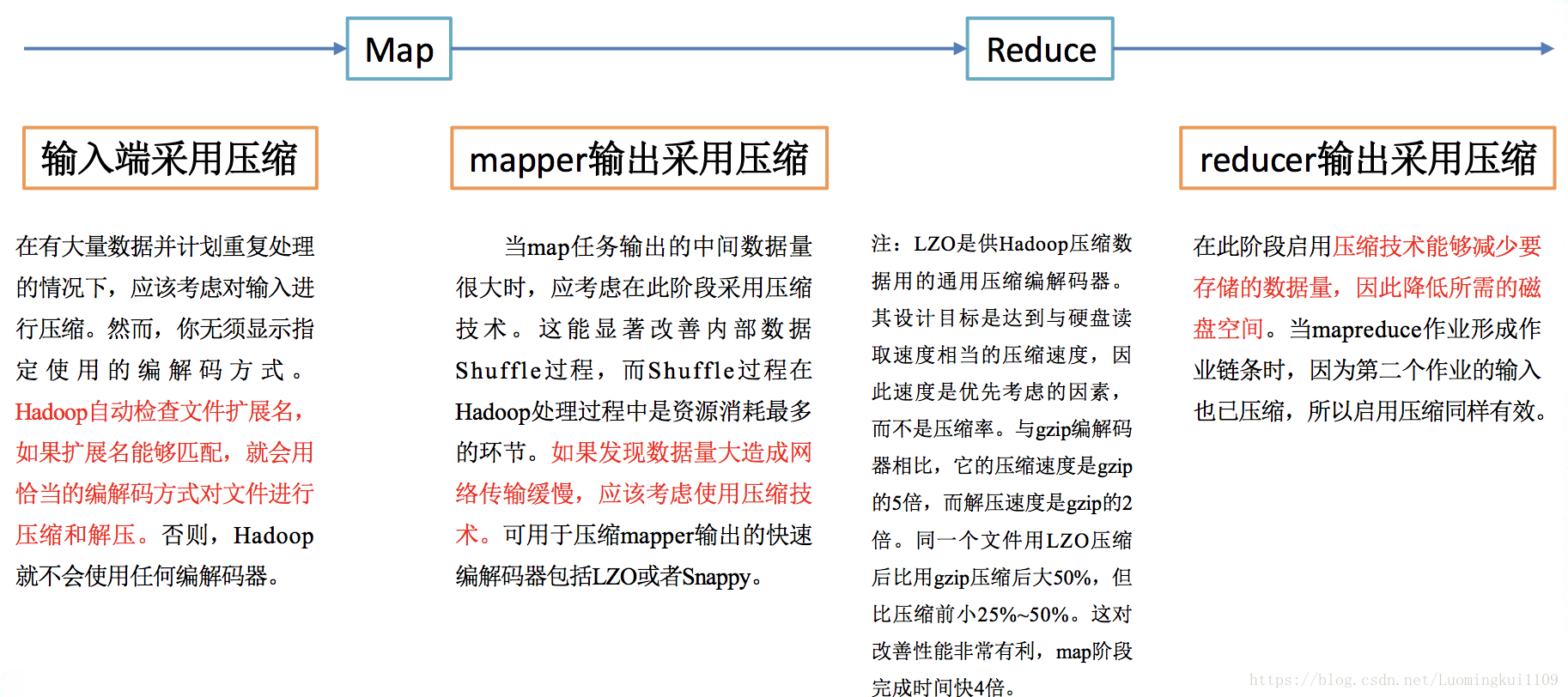 压缩Mapreduce的一种优化策略:通过压缩编码对Mapper或者Reducer的输出进行压缩,以减少磁盘IO,提高MR程序运行速度(但相应增加了cpu运算负担)。