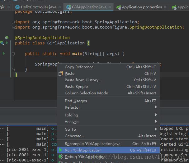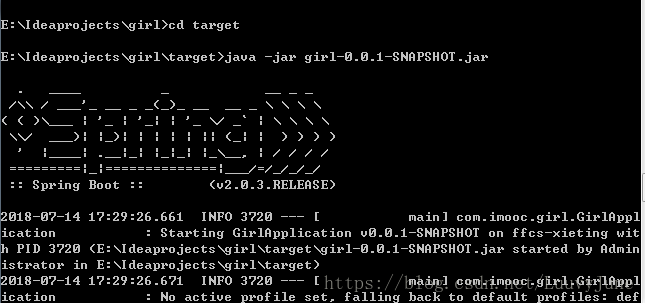 然后再进入target目录,输入 java -jar girl-0.0.1-SNAPSHOT.jar