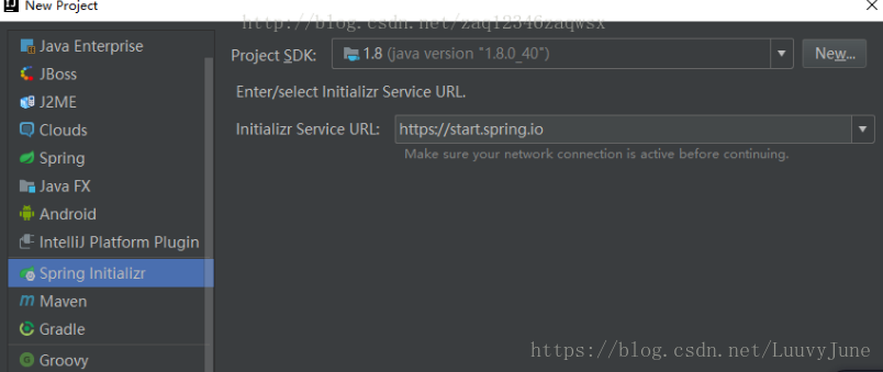 选择Spring initializr jdk选择自己安装的1.8的版本: