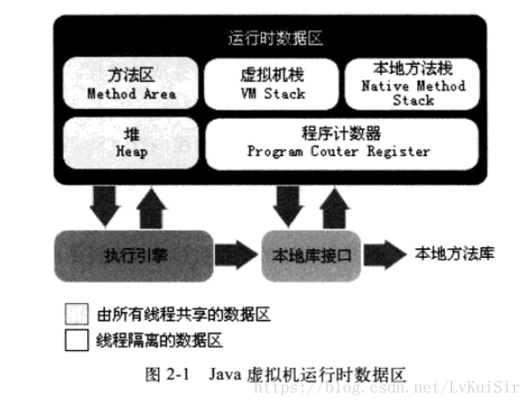 Java虚拟机在执行Java程序的过程中会把它所管理的内存划分为若干个不同的数据区域。这些区域都有各自的用途,以及创建和销毁的时间,有的区域随着虚拟机进程的启动而存在,有些区域则是依赖用户线程的启动和结束而建立和销毁。