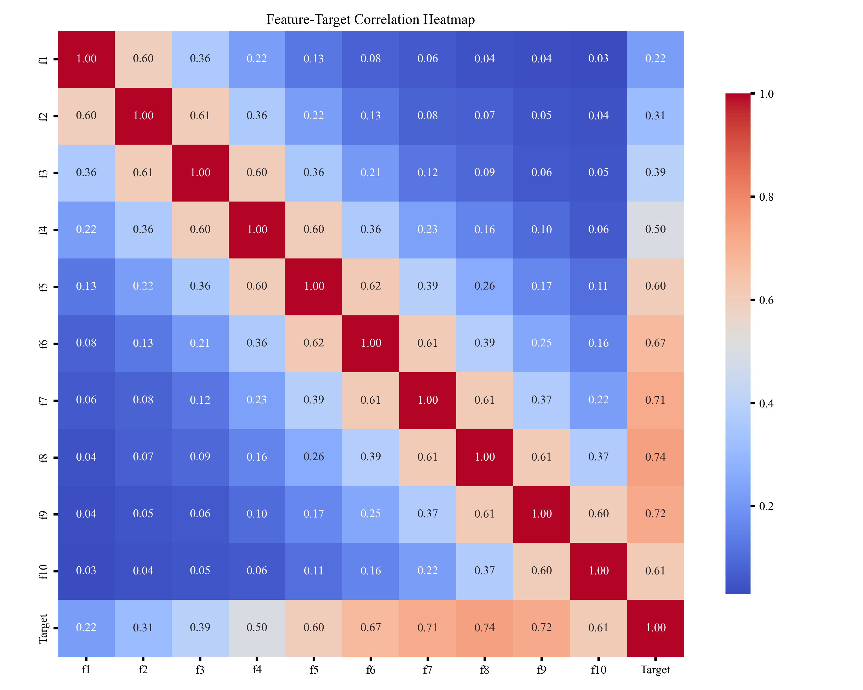 我的程序中给出数据data.xlsx(代码及数据见文末),10 列特征值,1 个目标值,适用于各行各业回归预测算法的需求,其中出图及数据自动保存在当前目录,设置的训练集与预测集的比例为 80%:20%。