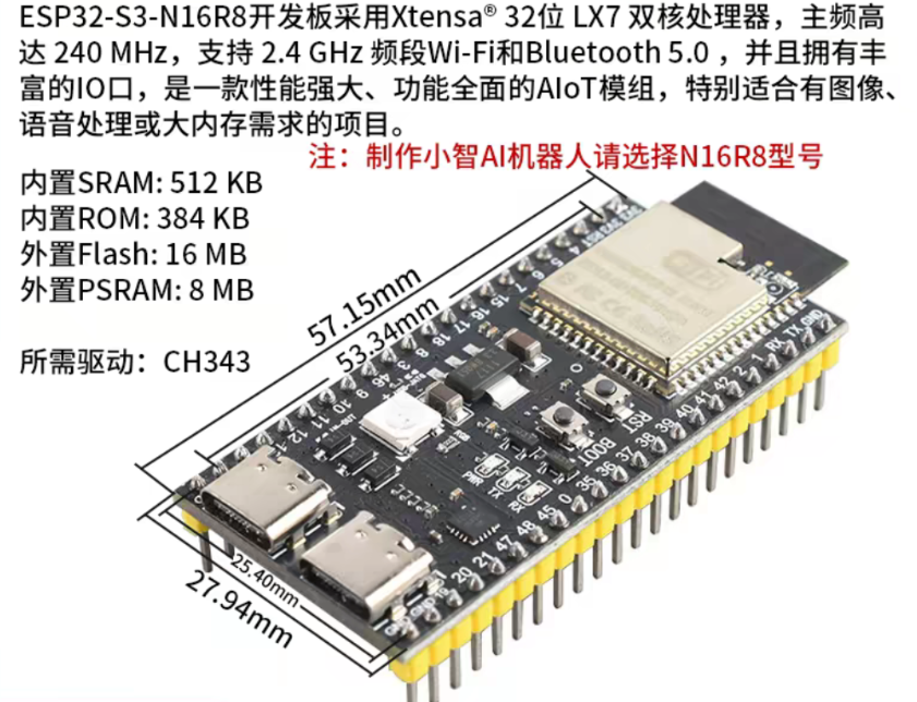 开发版图片(图中左边typec接口上面一点的白色小方块就是WS2812 RGB) :