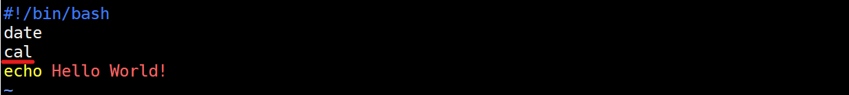 编写 lee.sh 脚本文件,cat 命令应为 cal(显示系统日历),假设不小心打成 cat。