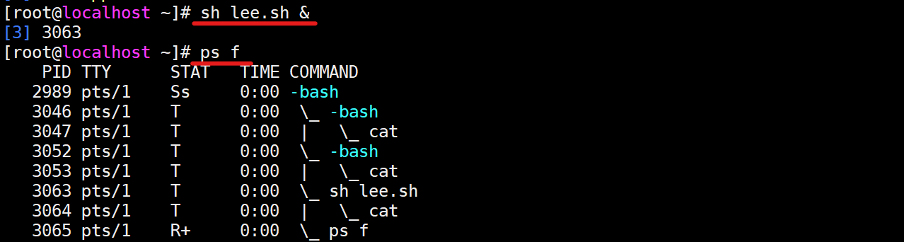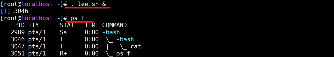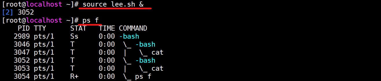 cat 在当前的 shell 中运行,没有开启新的 shell ,直接使用当前的 shell 调用命令