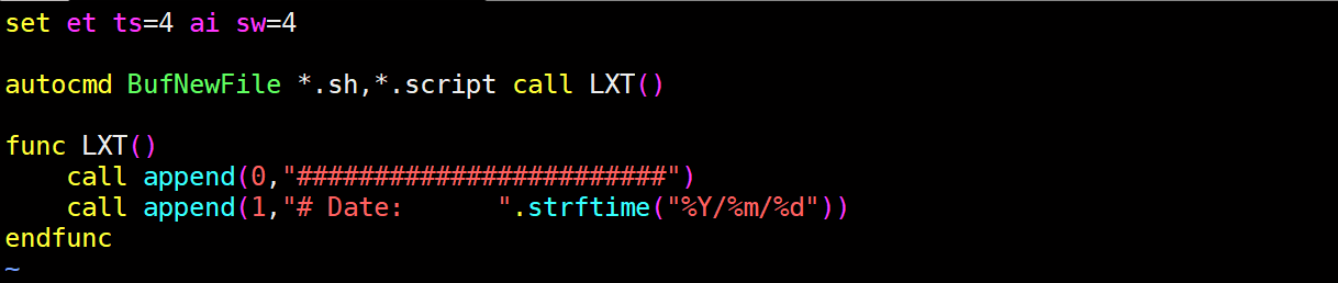 ① autocmd BufNewFile *.sh,*.script call LXT()