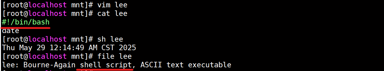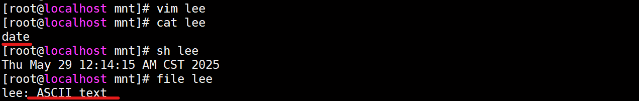 1.若只在 lee 文件中写入 date ,它仍是脚本,但是不规范。