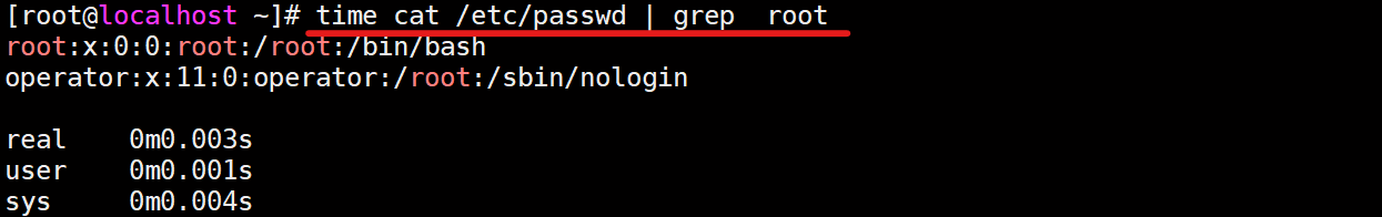 - 尽量用少的命令来完成动作,如:在 /etc/passwd 中查看过滤含有 root 的内容