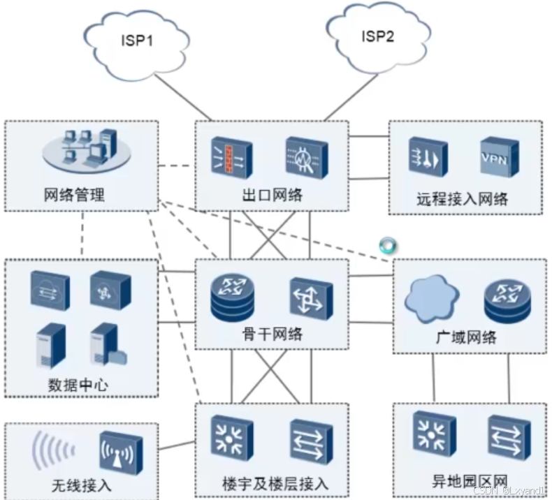 覆盖范围广、用户数量多、网络需求复杂、功能模块全、网络层次丰富