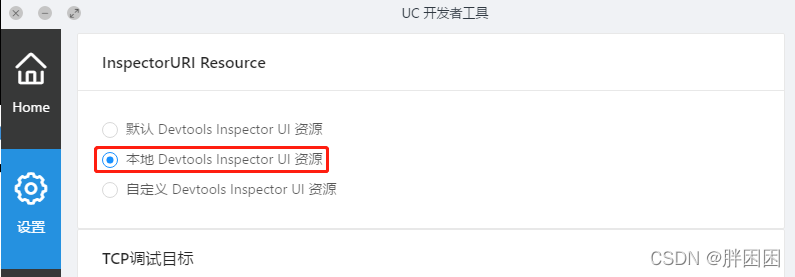 使用uc-devtools工具时【设置】选择:本地 Devtools Inspector UI 资源