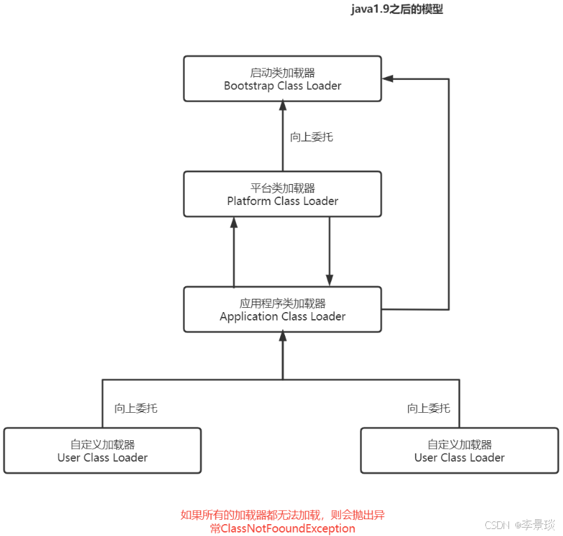 JVM原理:通过类加载器(启动类加载器(Bootstrap ClassLoader)、扩展类加载器(Extension ClassLoader)|平台类加载器(Platform ClassLoader)、应用程序类加载器(Application ClassLoader)、自定义类加载器(User ClassLoader))及其双亲委派机制,经过加载、验证、准备、解析、初始化、使用、卸载等步骤,实现java类加载到虚拟机内存、转换为二进制执行,到卸载出内存。