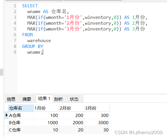 MAX(if(wmonth='1月份',winventory,0)) AS 1月份,