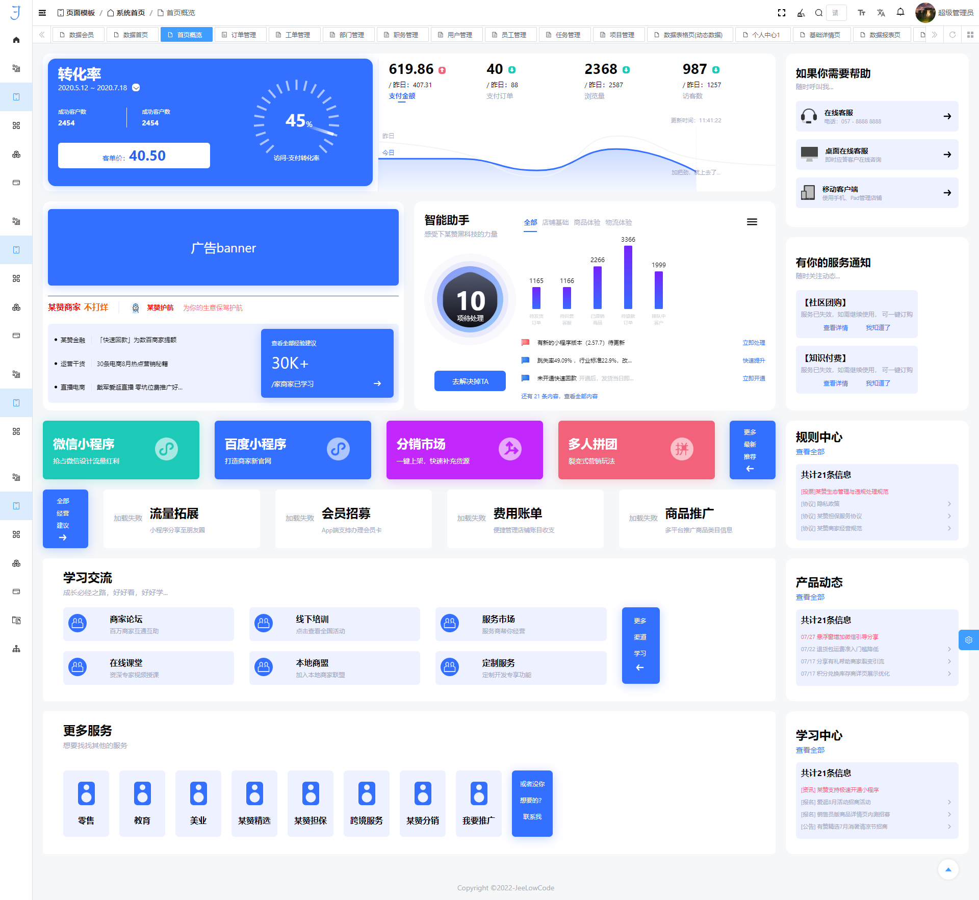 - 模块化封装:将常用业务功能(如权限控制、审批流程、报表管理)进行标准化封装,实现插件化组合。开发者可按需“插拔”功能模块,快速搭建系统逻辑。