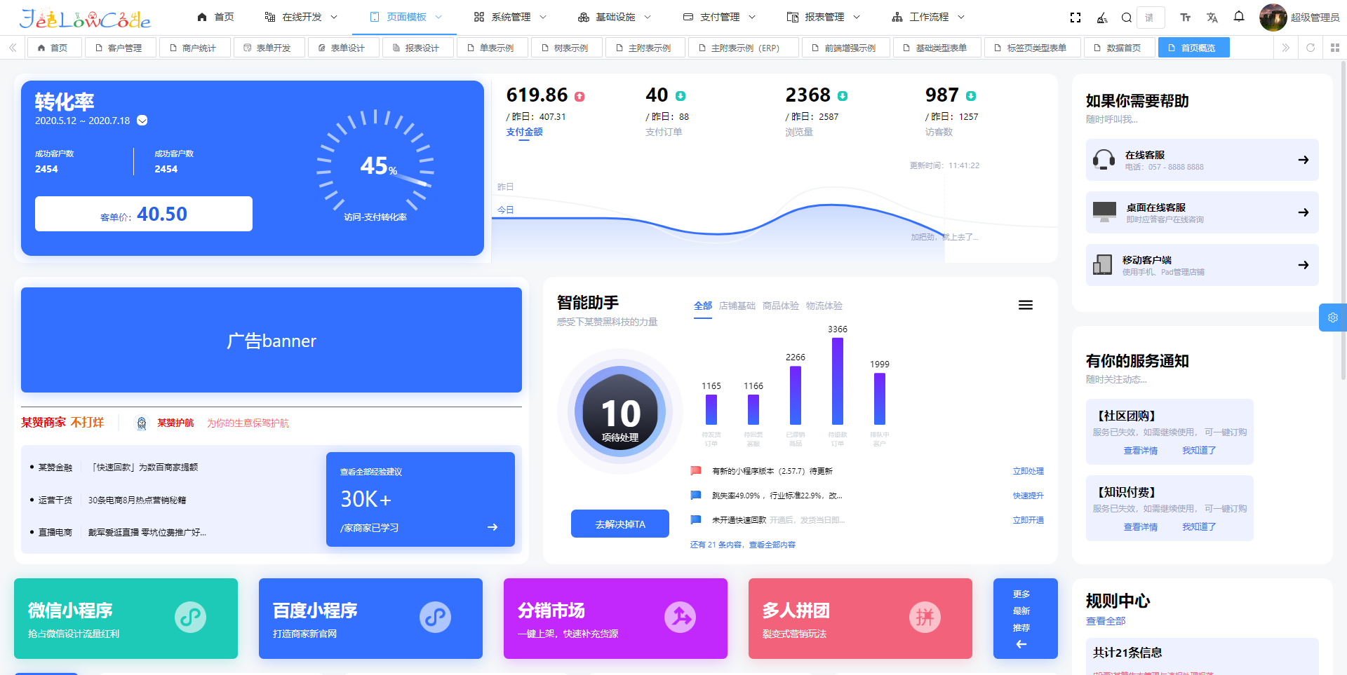 通过流程图或节点拖拽方式,平台实现业务逻辑的直观配置,使复杂逻辑快速可视化和可控。