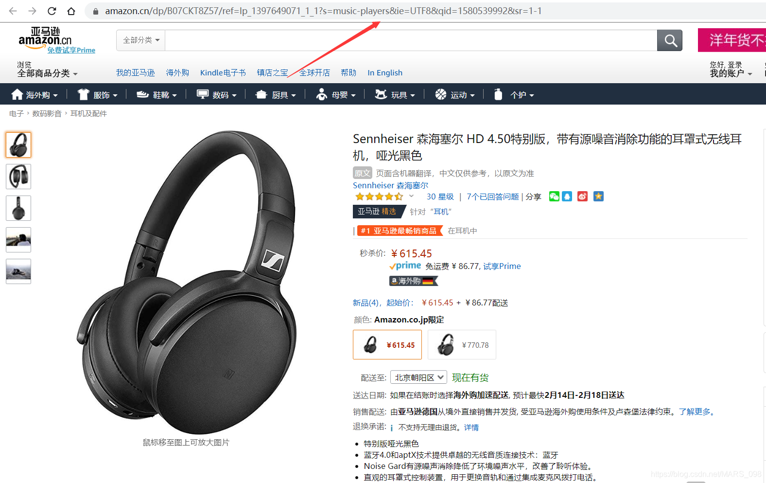 1、首先我们打开亚马逊中国,随便找到一个商品,这是一个耳机:https://www.amazon.cn/dp/B07CKT8Z57/ref=lp_1397649071_1_1?s=music-players&ie=UTF8&qid=1580539992&sr=1-1