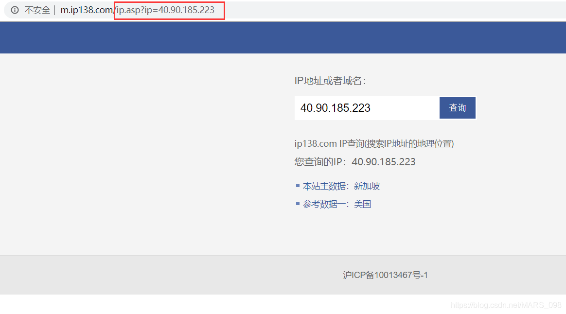 可以发现,网站并没有对提交的IP地址进行大的处理,简单将其附在原来的url中,这种url接口就可以通过提交的IP参数来实现查询并返回查询到的信息。