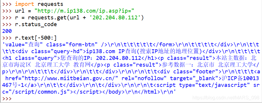 r = requests.get(url + '202.204.80.112')