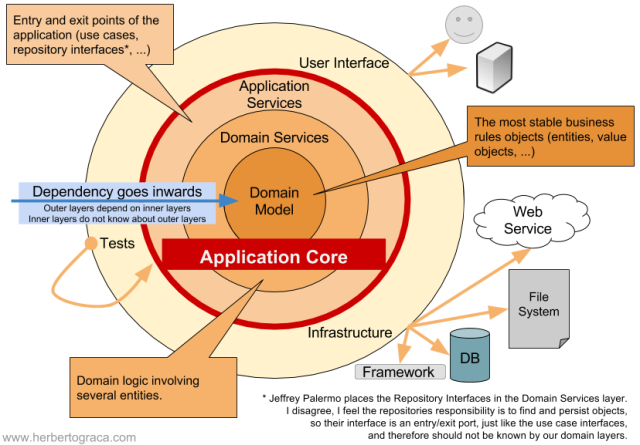 这些适配器为了适应应用核心的一个非常特定的入口点,即端口。端口只不过是工具如何使用应用程序核心或应用核心如何使用它的规范。
