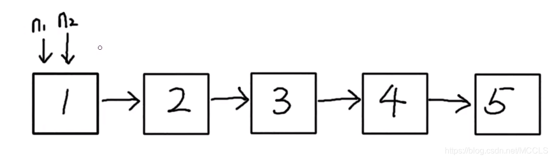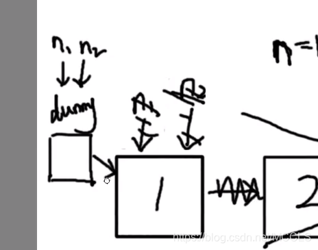 解决方法:在第一个节点前创建一个dummy的节点指向第一个节点,让n1,n2指向dummy空指针