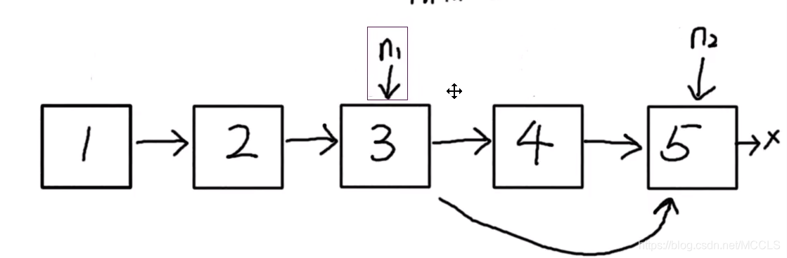 删除节点:如果对4节点进行删除因为为单链表所以不能对前节点进行操作(对4节点来说要把前节点的链指向5)所以n1最后不应该指向4应该指向3这样就方便了删除节点操作
