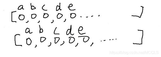 2.建立一个长度为26的数组,起始值为0,有字符串组中有几个字符串就建立几个26长度的数组,如图所示每个字母对应初始值都为0,用来记录,字母的出现频率。