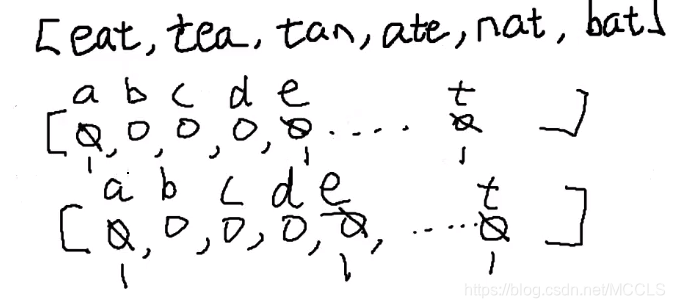 3.遍历所有字符串.将字母的出现频率放到数组的对应位置里(利用ascii码)