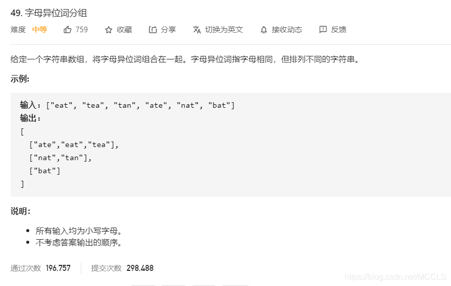 (1)对每个字符串进行字母排序,显然这并不是最优解需要进行排序,时间复杂度为nlogn