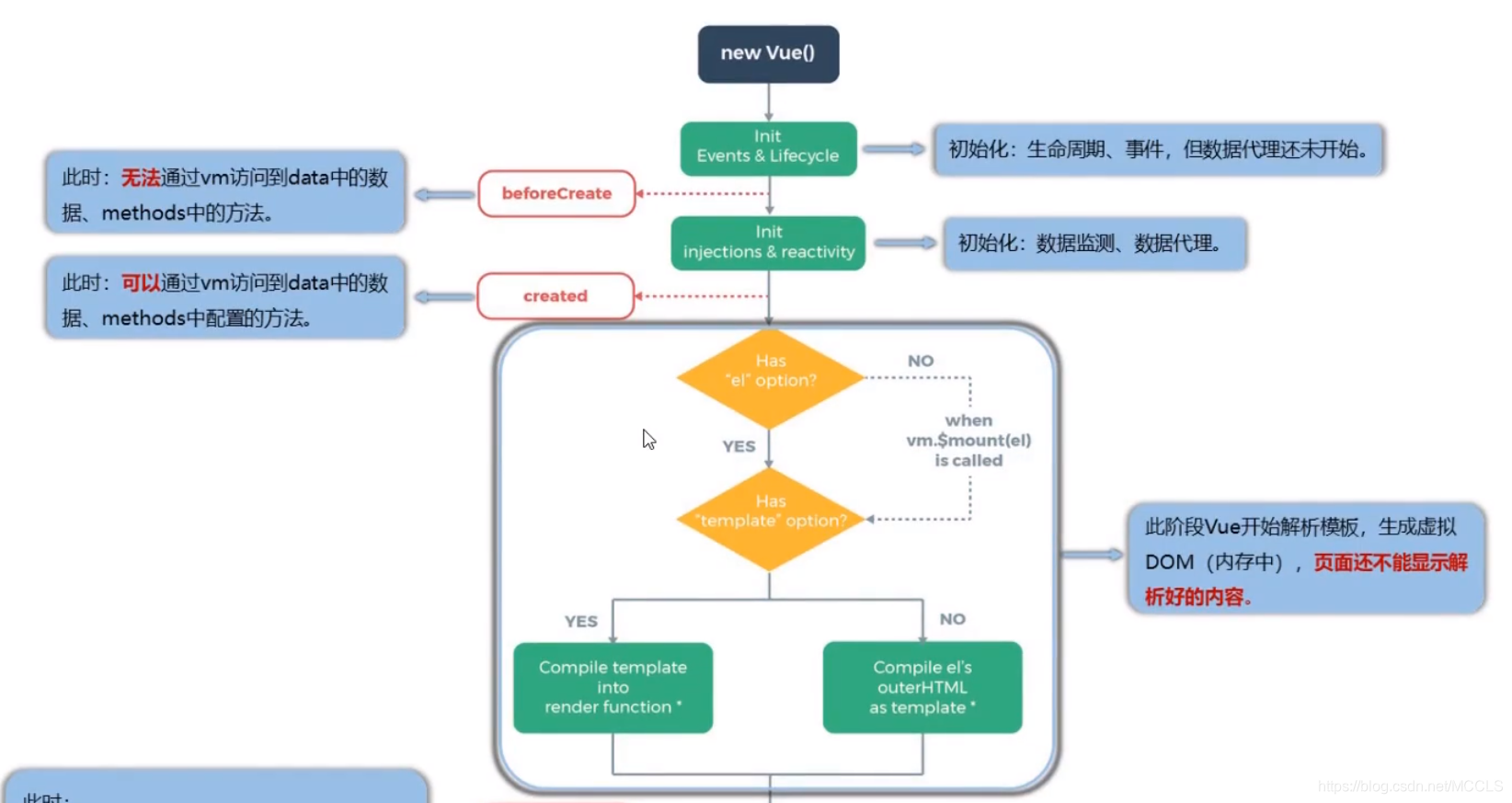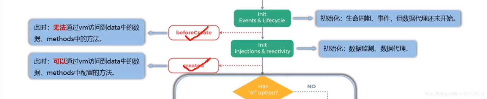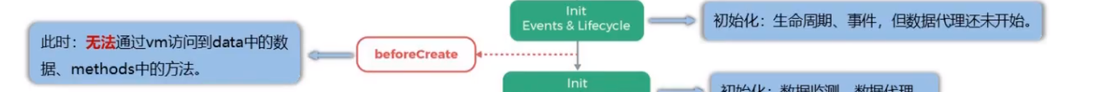 因为数据代理还没开始所以这个生命周期beforeCreate 无法通过vm访问到data中的数据、methods的方法