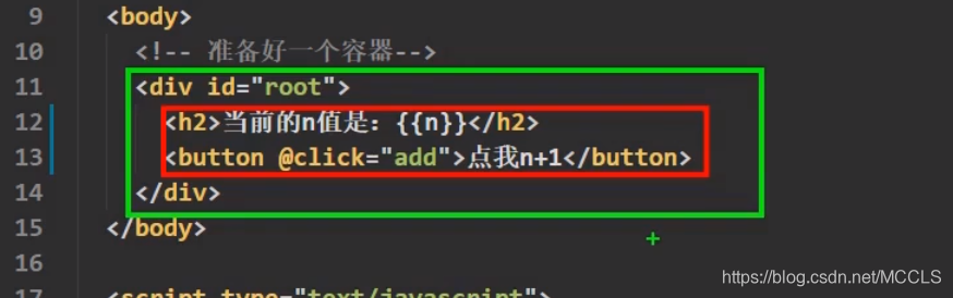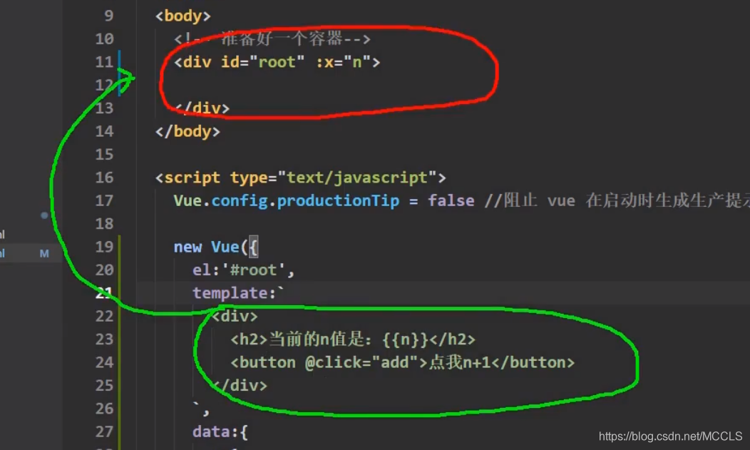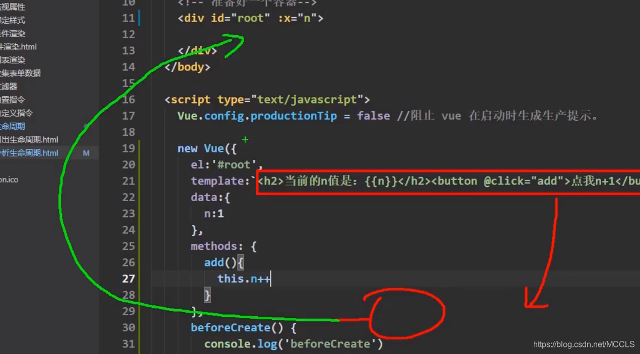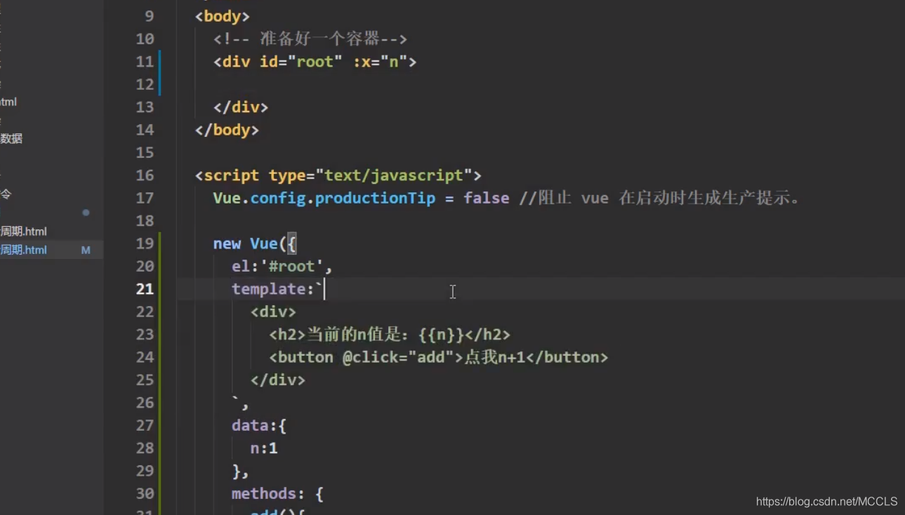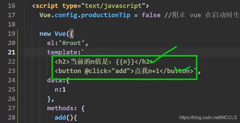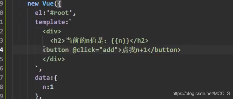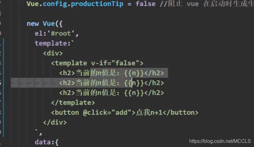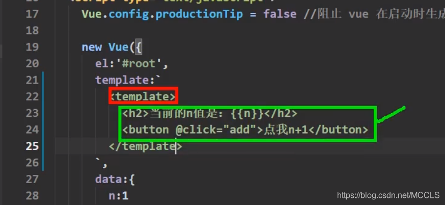 template时, 配置在vue实例中,后面放字符串,字符串内容就是html写的内容