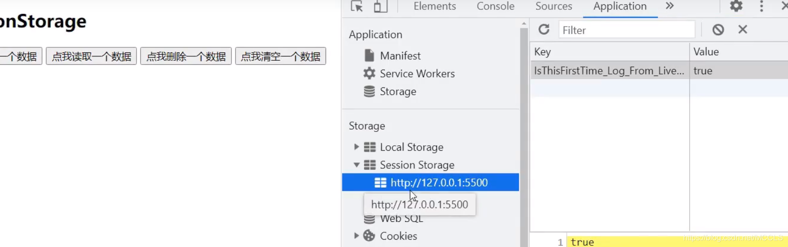 sessionStorage session为会话的意思,也就是浏览器关闭的意思,就是当浏览器关闭,存入的数据会消失